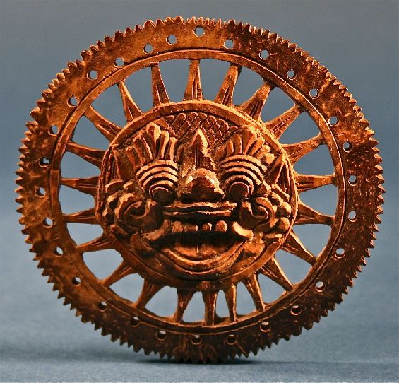 Title: Old Collectible Folk Art Carved Coconut Shell Head Face Sun Design