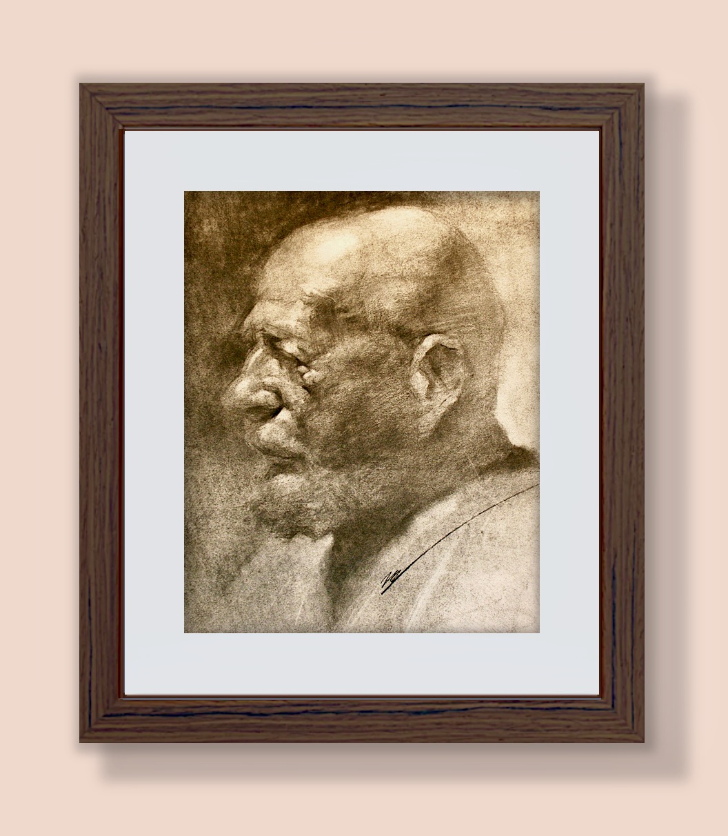 Description: This charcoal life drawing on paper, created by James Wu in one of his drawing classes, comes with its own hand-cut paper mat. James Wu is a world-renowned contemporary drawing instructor wh...