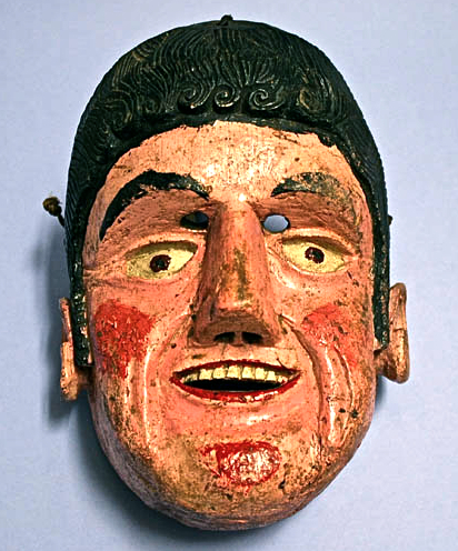 Title: Antique Painted Wood Latin American Spanish Ceremonial Dance Mask