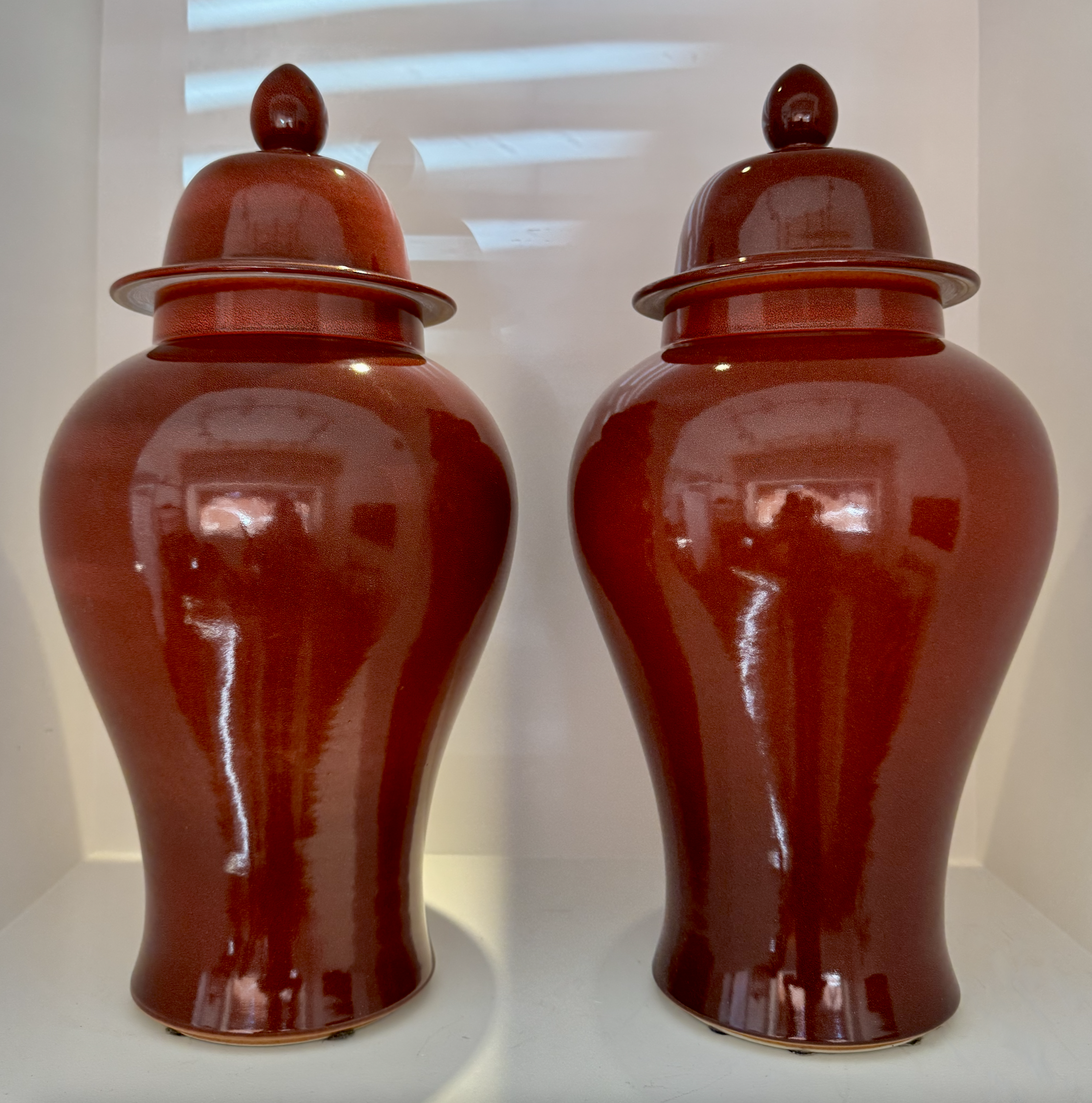Title: Two Spectacular Porcelain Ox Red Vintage Chinese Lidded Ginger Jars