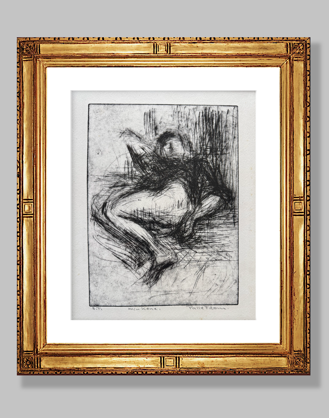 This is an authentic and rare signed print — an exciting discovery: a “model‑study” by a skilled artistic draftsman. Min Kone by Palle From is a wonderful, unusual abstraction of a n...