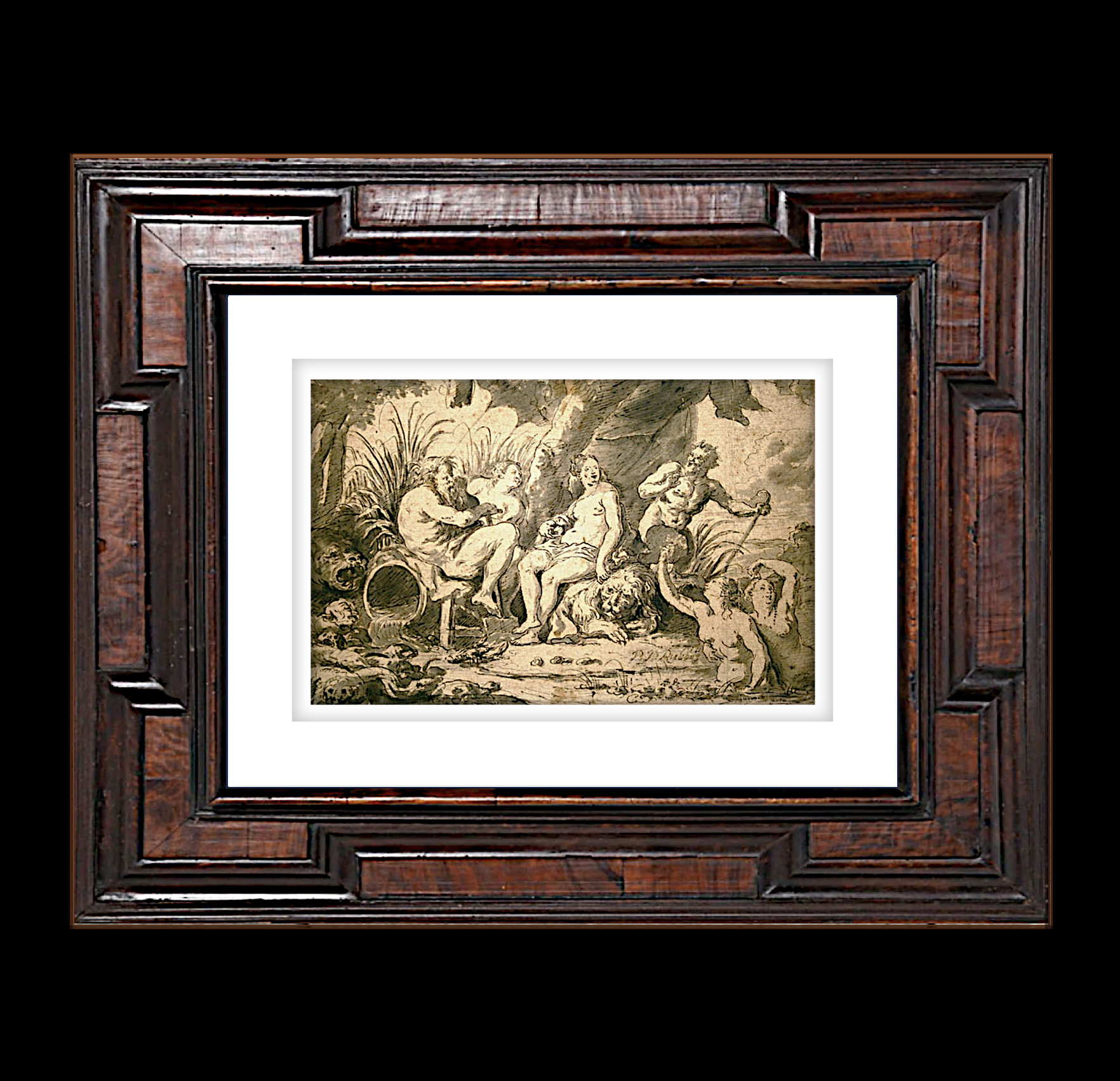 Antique Ink Wash Sketch of Nymphs & Satyrs, Peter Paul Rubens (Flemish, 1577–1640)