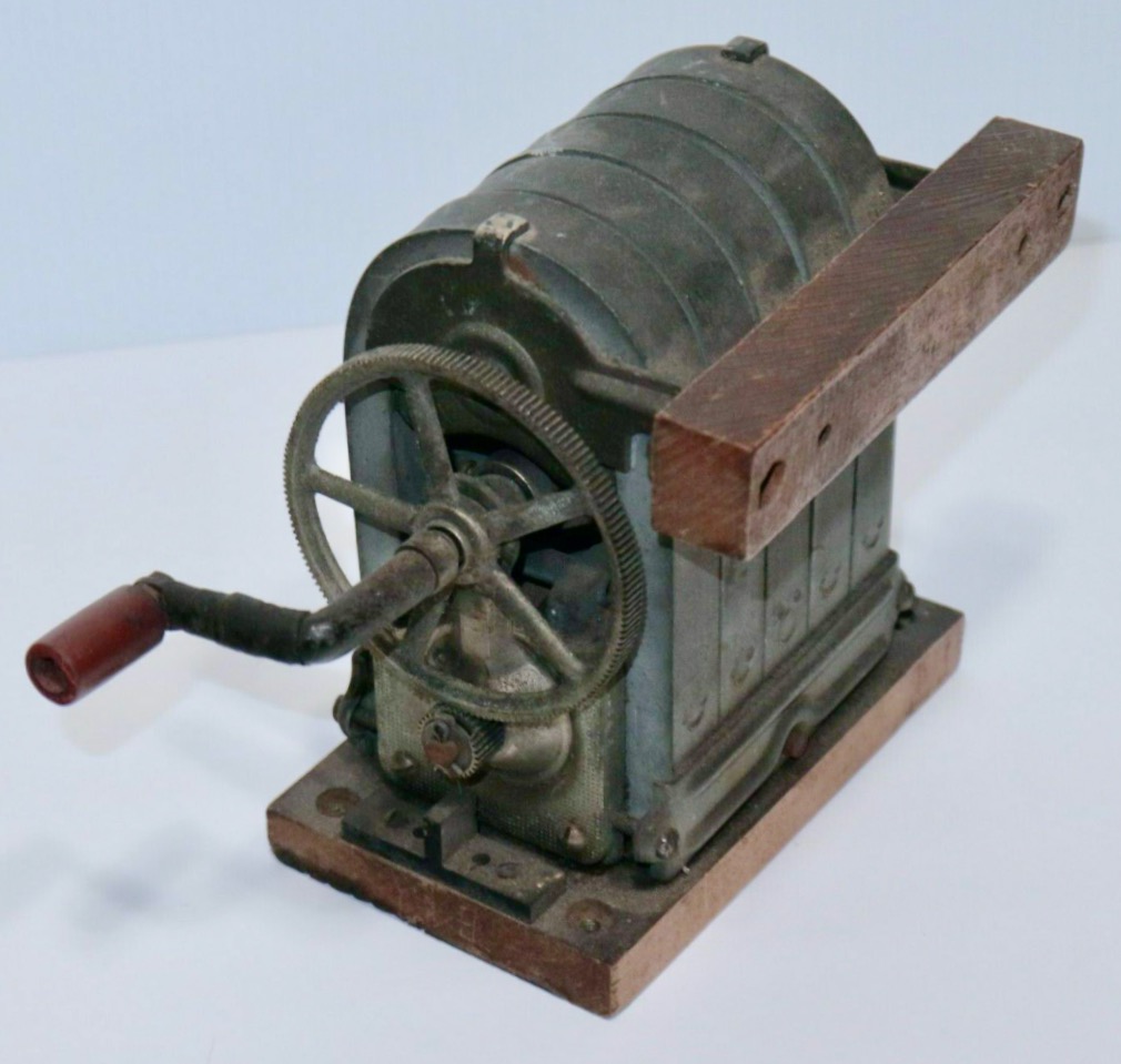 No very little about it. Interesting old mechanical machine. Antique Western Electric USA Hand Crank 5 Bar Telephone Generator Magneto. âNot working, Makes a loud noise when the handle is cranked, Parts or repairâ