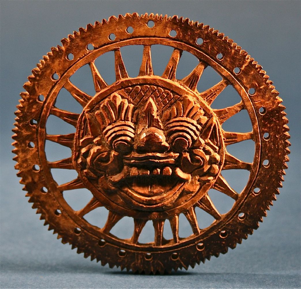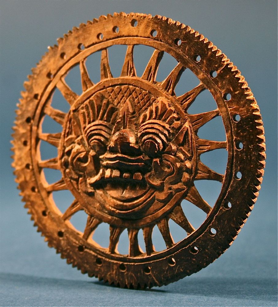 Title: Old Collectible Folk Art Carved Coconut Shell Head Face Sun Design