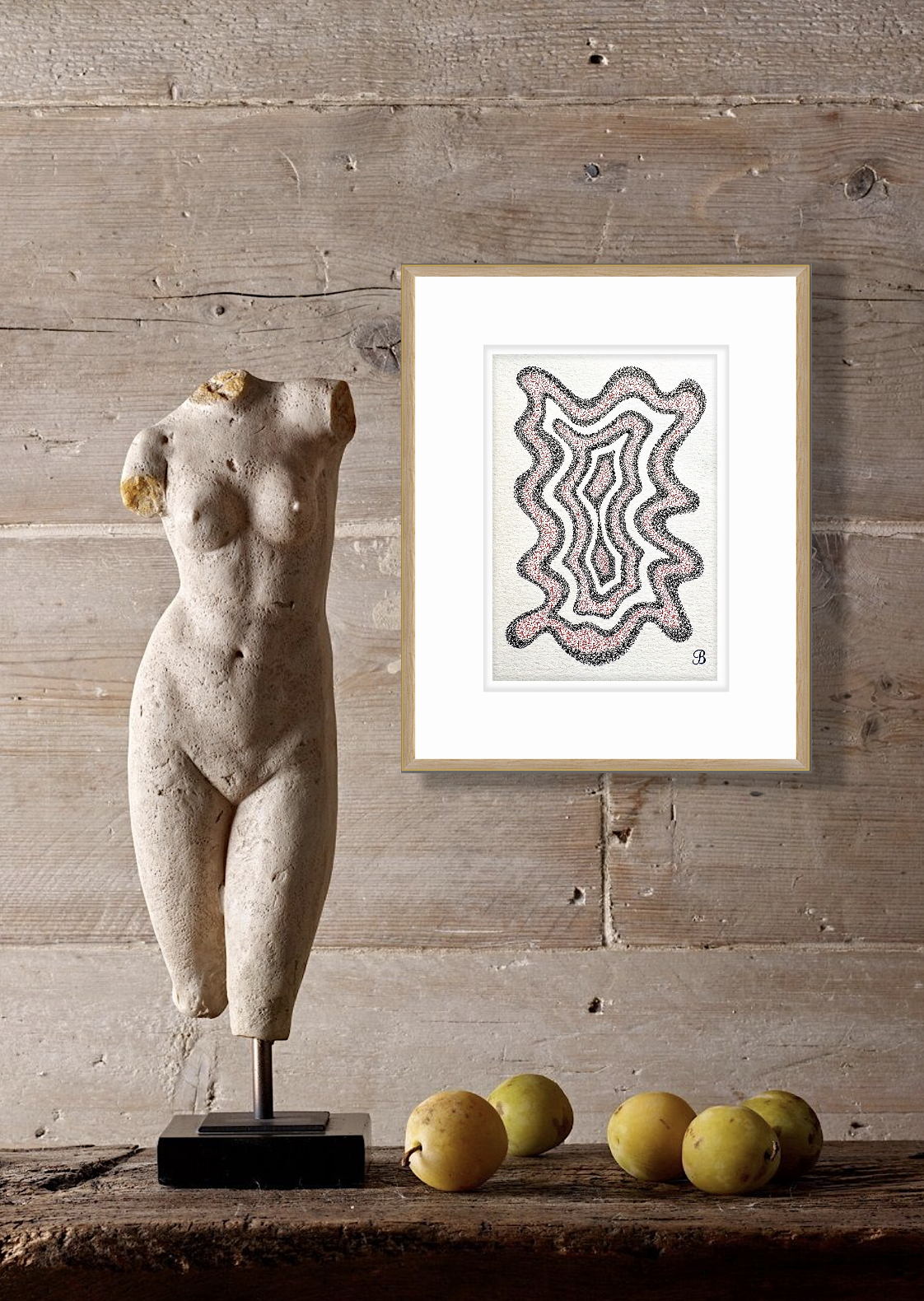 I have approximately 50 exceptional contemporary small works on rag paper available. Each abstract graphic design piece is an original drawing, signed, and accompanied by provenance and a personal story. Created entirely freehand with remarkable patience and precision, every mark, scratch, and point reflects a highly refined technique. These abstract pointillism pen-and-ink paintings embody both simplicity and beauty, with each composition requiring around eight hours of focused craftsmanship. Please schedule an appointment if you’re interested in viewing them. $125 per piece — several sizes available (first-come, first-served). Standard size: 5½ × 7½ inches. Abstraction through pointillism and stippling is a sensitive and time-consuming art form that demands both technical skill and patient observation. Each dot or mark is deliberately placed, contributing to a larger composition that conveys depth, texture, and emotion. This meticulous process has a rich history, tracing back to the late 19th century with artists like Georges Seurat and Paul Signac, who pioneered pointillism as a method of capturing light and color scientifically. Over time, abstraction evolved, allowing artists to use these tiny, precise marks not just for realism but to evoke personal expression and conceptual ideas. In contemporary practice, pen-and-ink stippling and pointillism honor this legacy, combining the discipline of craft with the freedom of abstract storytelling, creating works that are both visually compelling and deeply reflective of the artist’s intent.