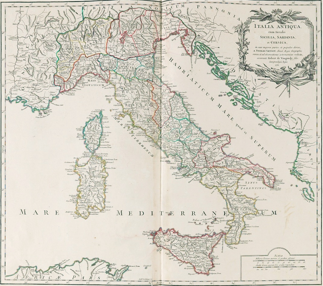 Title: Antique Map On Rag Paper Of Italy By Sanson & DeVaugondy