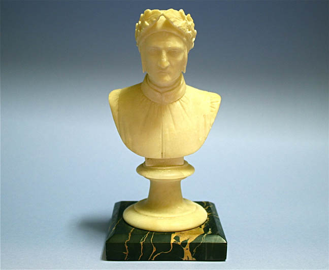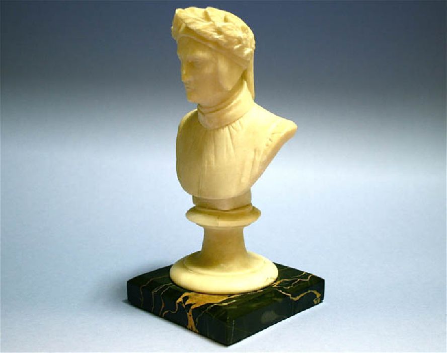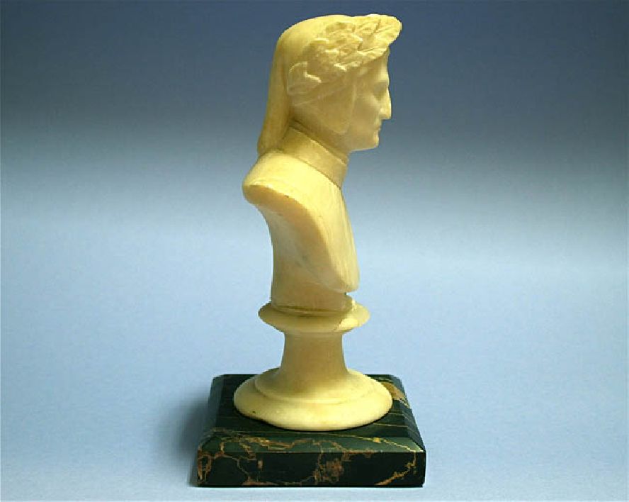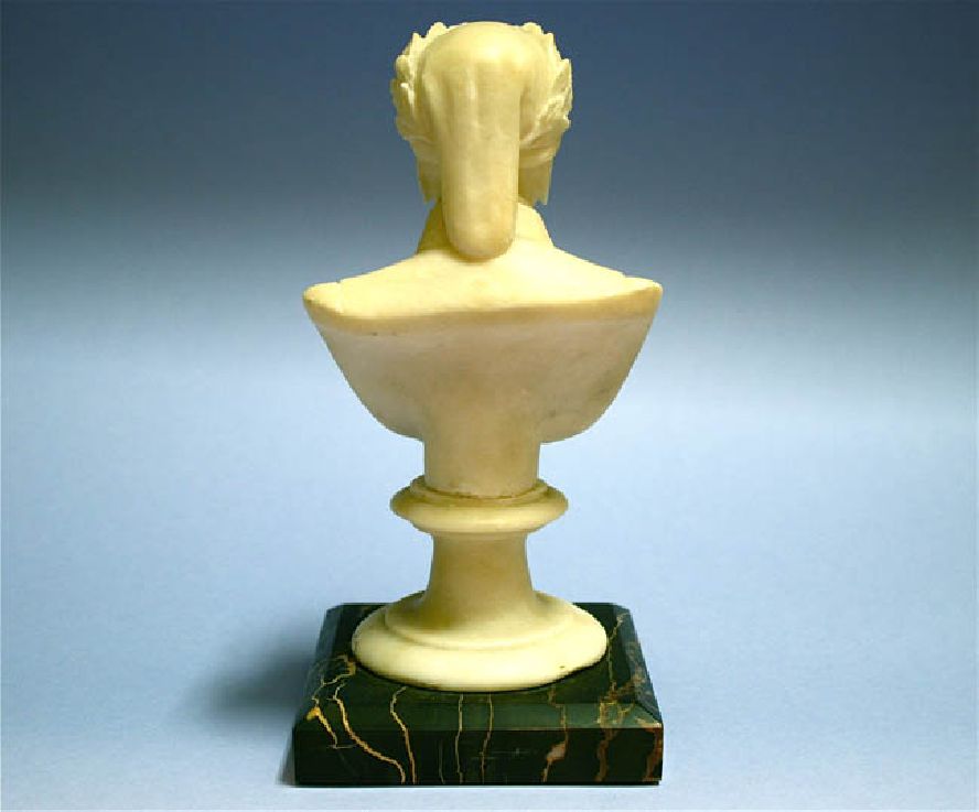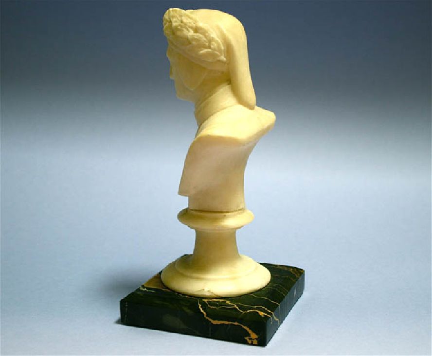 An alabaster head of a beautifully stone bust. This is a thinker or portrait statue of a Historical figure. This masterful portrait bust represents a vigorous middle-aged man who stares into the distance with a critical, penetrating gaze. The broad, square face is carefully modeled; wide furrows cut into the low forehead and at the corners of the eyes add to the intensity of the expression. The work is a splendid example of psychological portraiture and exudes a sense of abrupt strength that finds close parallels within practicing philosophy.