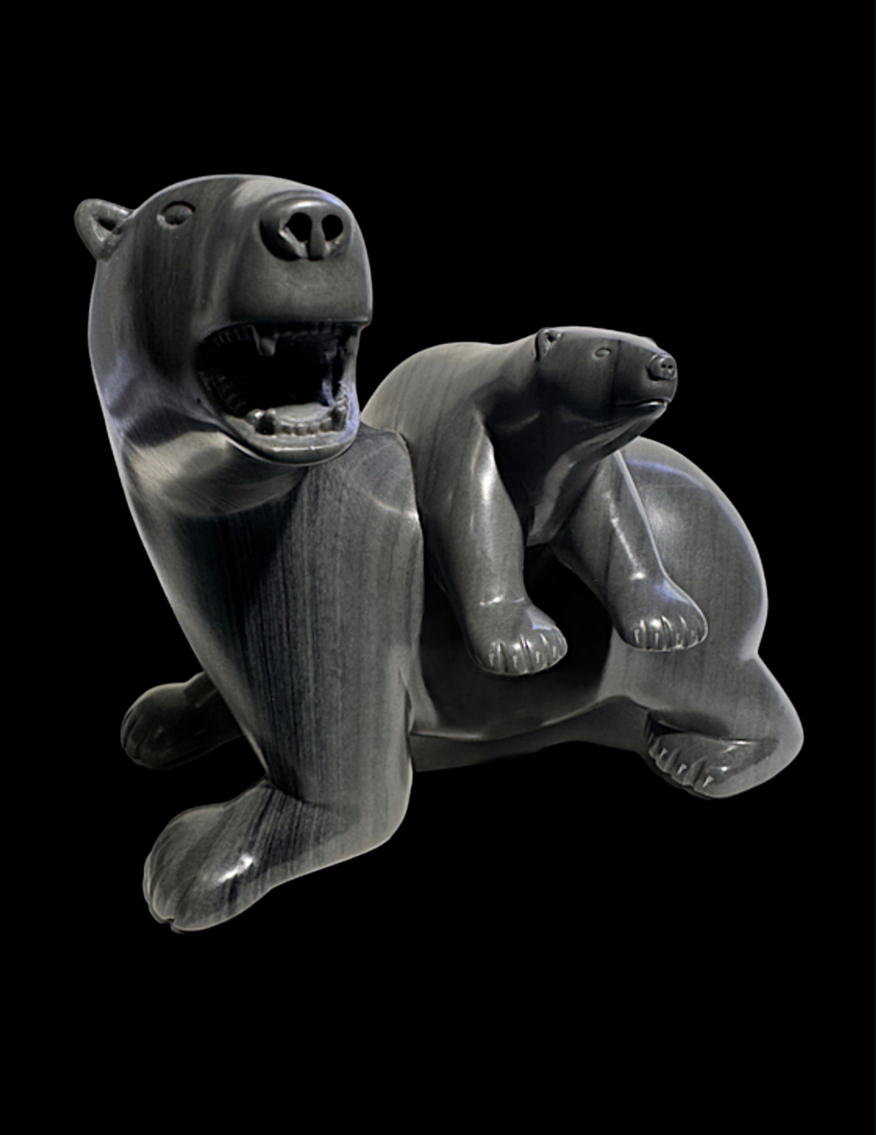 Arctic Inuit Polar Bear Grey Stone Carving Art Sculpture